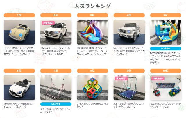 こちらは2024年12月時点での人気ランキングですが、乗用のラジコンカーや鉄棒などがランキングに上がっていますね!